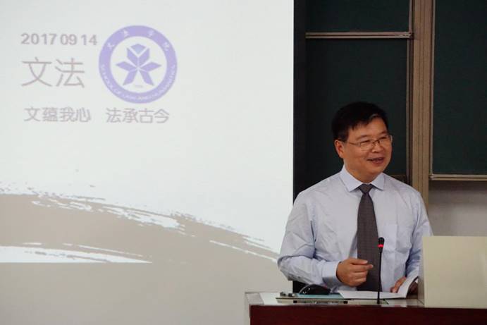 下午二时许,开学典礼在庄严的国歌声中拉开了序幕,学院院长殷召良老师为大会致欢迎词。殷院长首先向2017级研究生新生表示欢迎,继而向新生介绍了文法学院的相关情况,提出了研究生的培养和要求,表达了对新生的殷切希望。