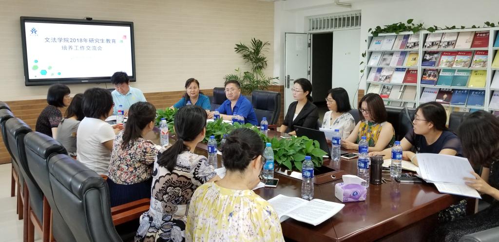 2018年6月29日,文法学院召开了研究生教育培养工作交流会。会议由负责研究生工作的许卉艳副院长主持,殷召良院长、董会泽书记出席,全体研究生导师参加。