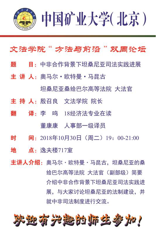 此次报告交流使师生们进一步了解了坦桑尼亚司法和法律的独特性和复杂性、普通法系的司法体制在非洲的实践情况,对一带一路背景下中非合作过程中可能产生的民商经济法律争端的解决有了进一步认识,对中非友谊和合作有了更深刻的体会。此场报告会为文法学院“方法与前沿”双周论坛系列学术活动之一,得到了国际合作与交流处和研究生院的大力帮助和支持。