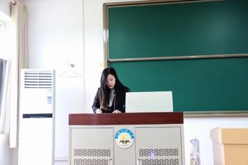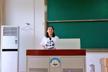 贾培培老师作为教师代表,向同学们分享自己的求学经历,希望同学们在大学时光中,要对父母怀感恩之心,平时做到以学为本,培养积极心态,与“修身,齐家,治国,平天下”的远大理想,做到和祖国同呼吸、共命运。