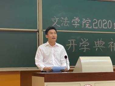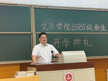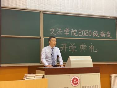 9月18日上午,文法学院2020级新生开学典礼在沙河校区教1-327举行。校党委副书记王忠强、文法学院院长殷召良、院党委书记杨洪兵、副院长许卉艳、副院长刘金程、副院长谭爽、外语系主任陈丽英、法学系主任李遐桢、行政管理系主任南锐、各系教师代表、班主任、辅导员、教学秘书出席了本次典礼。开学典礼由刘金程主持。