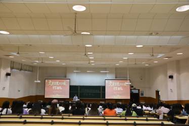 谭爽介绍了本科教学情况,并以橡皮筋为喻,希望同学们培养知识韧性,有广博的知识储备;具备社会韧性,结交志同道合的朋友;提升心理韧性,以健康、积极的心态面对挫折。