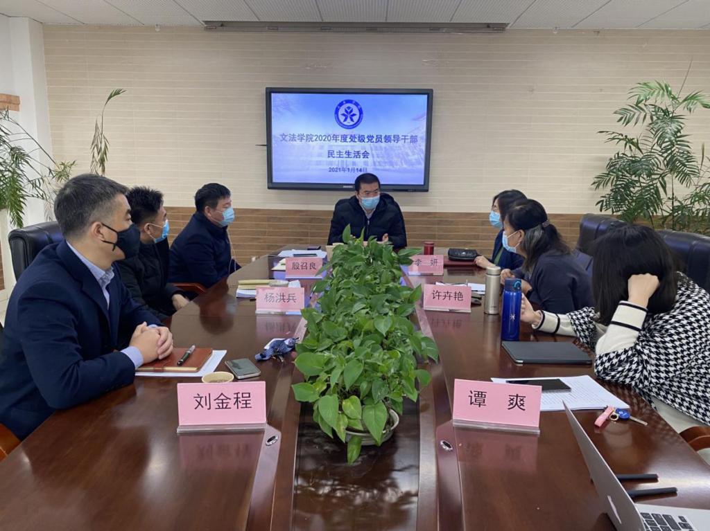 按照校党委统一部署,2021年1月14日,文法学院在逸夫楼1214召开2020年度处级党员领导干部民主生活会。校党委副书记王忠强,校纪委委员、马克思主义学院院长李妍出席督导。文法学院院长殷召良、院党委书记杨洪兵、副院长许卉艳、副院长刘金程、副院长谭爽参会。会议由杨洪兵主持。