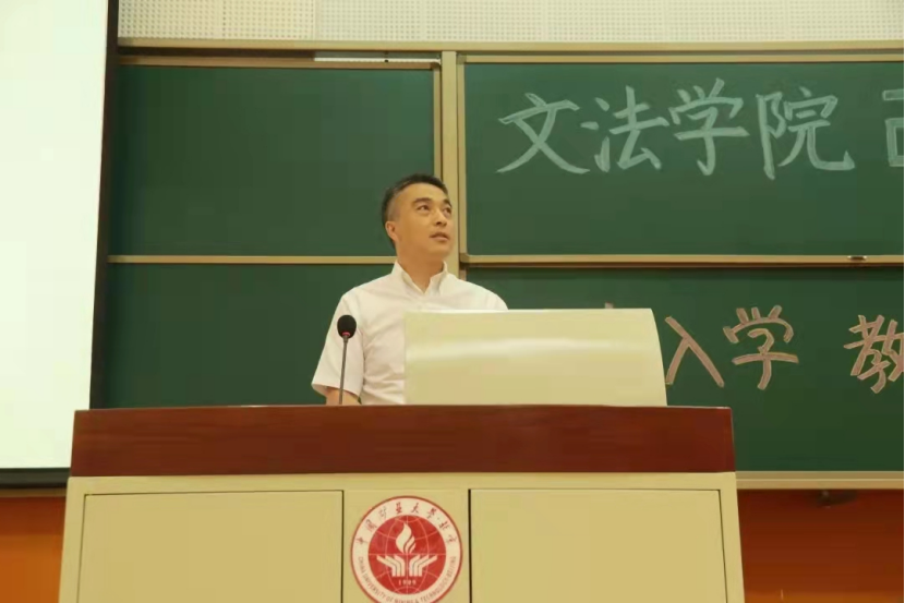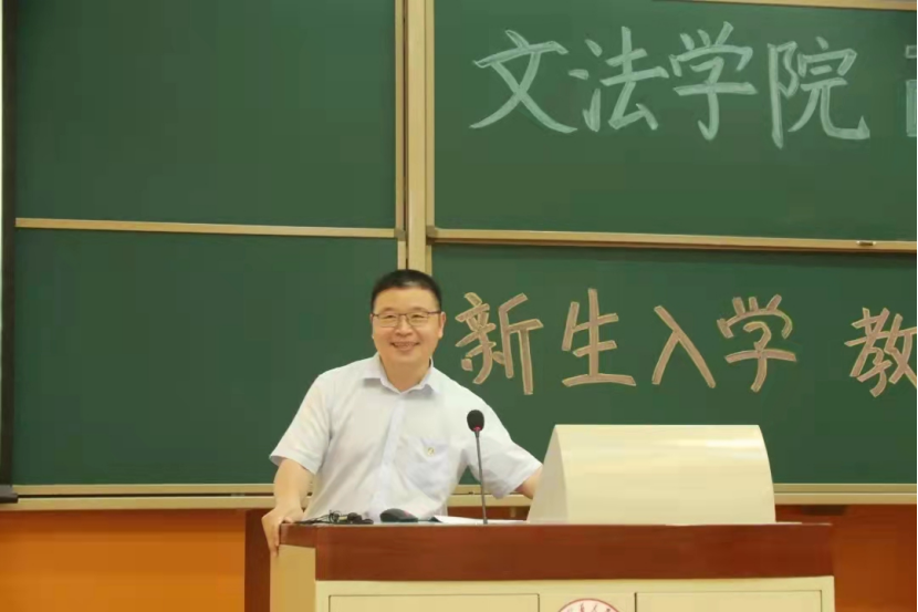 殷召良院长对各位新同学的到来表示热烈的欢迎。殷院长以风趣幽默的口吻介绍了2021级新同学的情况以及学院的历史沿革、师资队伍、办学资源和条件,他希望同学们主动学习,增强本领,提高综合能力,与文法学院携手共进,建设更美好的文法学院。