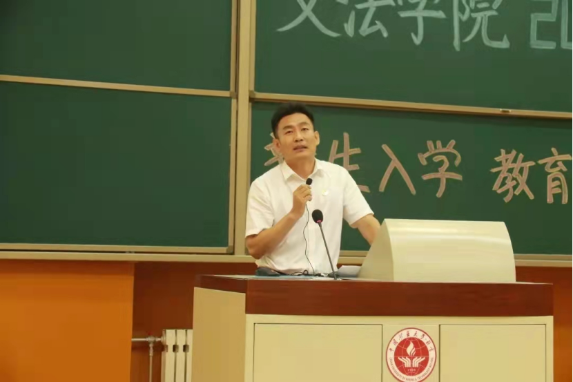 金秋九月,天高气爽。文法学院于2021年9月3日下午在沙河校区教1-519召开了2021级新生入学教育大会。文法学院院长殷召良、文法学院党委书记杨洪兵、副院长许卉艳、副院长刘金程、副院长谭爽、外语系系主任陈丽英、法学系系主任李遐桢、公共管理系系主任南锐、2021级英语专业班主任古明、2021级法学专业班主任朱梦妮、2021级公共管理专业班主任张欢欢、外语系教师陈曼、法学系教师刘宇、公共管理系教师卢玮静、学生辅导员王振、梁梦莹、高峰参加了本次会议。会议由副院长刘金程主持。