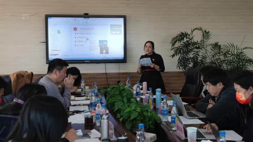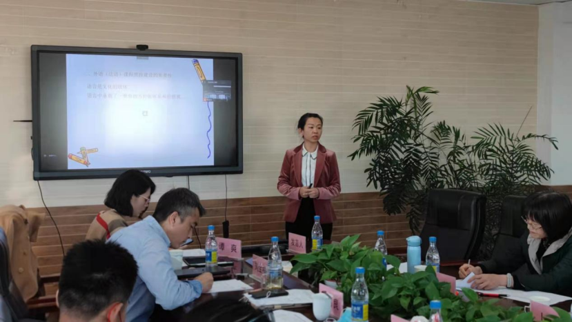 古明老师汇报《大学英语课程基层教学组织建设》项目。依托该项目,我院大学英语教学团队健全了合作授课机制,创新优化了教学手段,开发了线上教学资源,推动教学质量稳步提高。