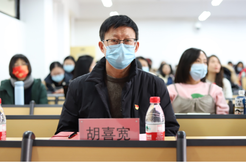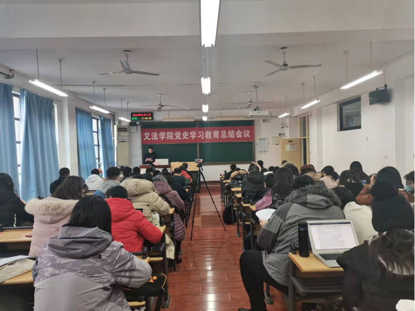 2022年1月11日下午,文法学院在学院路校区教学楼216召开党史学习教育总结大会。学校党史学习教育第三巡回指导组组长、校纪委副书记、监察处处长胡喜宽,文法学院院长殷召良,院党委书记杨洪兵,副院长许卉艳,副院长刘金程,副院长谭爽出席会议,全院教职工、学生党员代表、学生代表共100余人通过线下、线上方式参加会议。杨洪兵作总结讲话。殷召良主持会议。