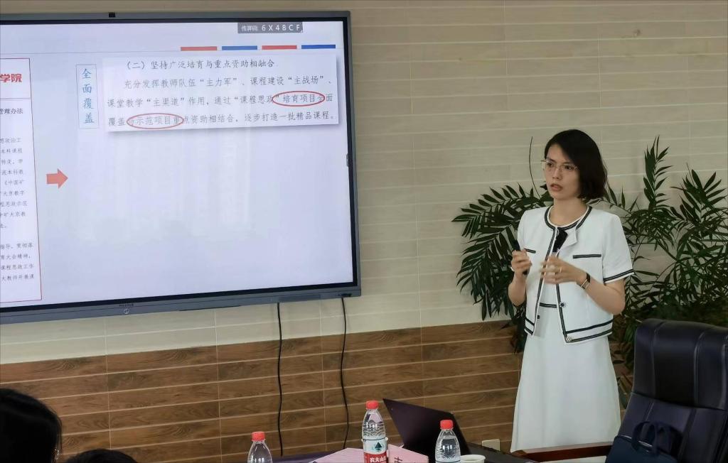 谭爽副院长对学院课程思政建设的理念原则、规章制度、资助情况、过程管理、建设成效等做汇报,介绍了在培育国家及省部级“课程思政示范课程、名师及团队”方面的经验,并表示未来将进一步从积累标志性成果、探索专业思政、夯实组织基础、强化督导评价等方面入手,全面提升课程思政建设成效。