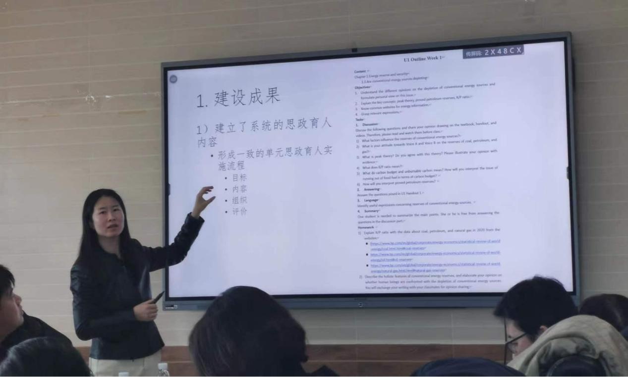 在学院“课程思政示范课项目”验收环节,李彬、许文文、李倩、杨晓华4位教师全面细致地汇报了《经济法》《社区治理》《大学英语1》《能源英语3》的课程思政建设情况以及取得的成效。
