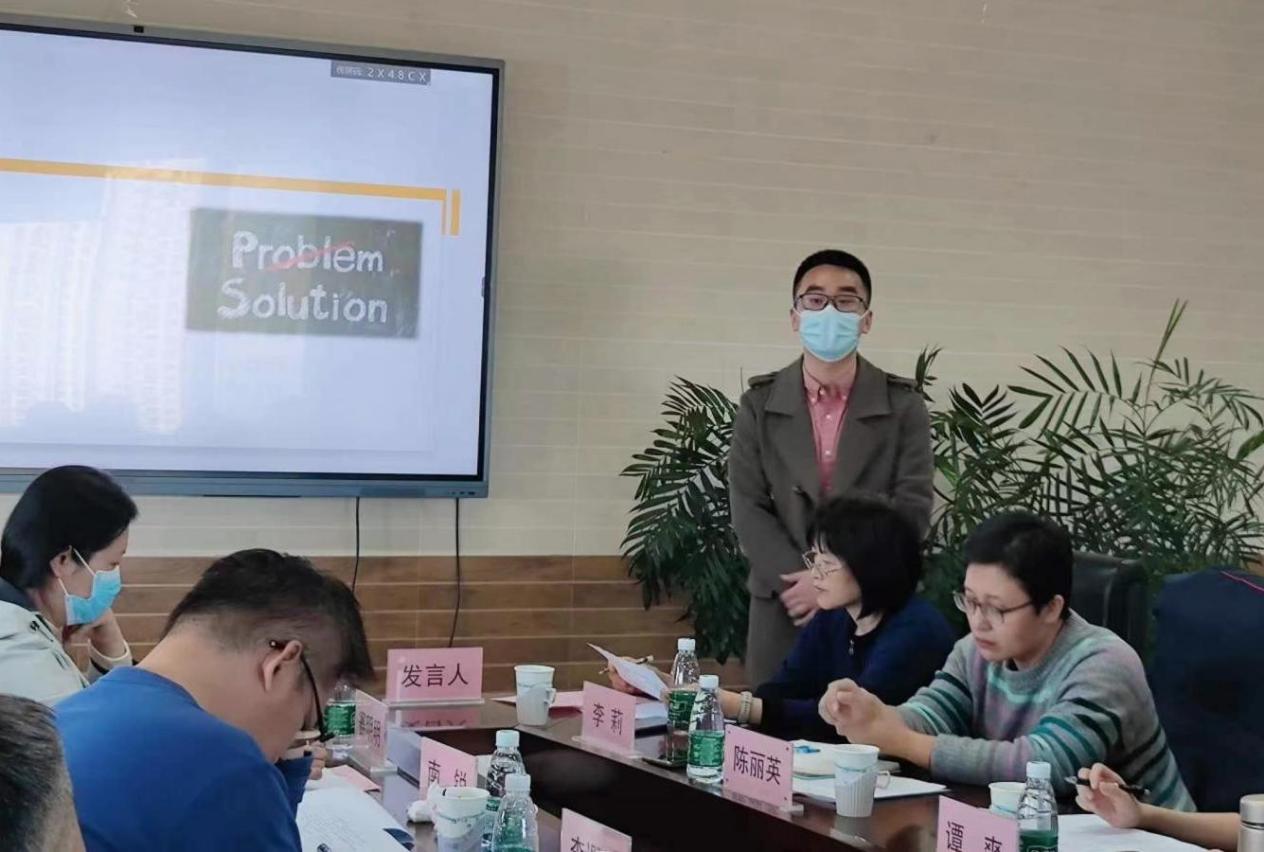 古明老师对《大学英语及拓展课程教学团队建设》项目建设情况进行汇报。该项目通过不断完善日常教学管理制度,改革教学内容和方法,形成“EGP为主,EAP+ESP为辅”四位一体课程模式,持续探索线上线下混合式教学模式,改革课程评价方式,推动教学质量和教学成效稳步提高。