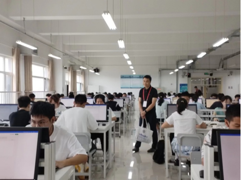 本次考试是我校首次采用全程机考方式进行的大规模外语类考试,学校高度重视,各部门协调联动,文法学院院长刘金程、教务处副处长朱郴韦、保卫处副处长刘国丰、文法学院副院长贾培培全程现场督导,外语系教师积极参与,保障了考试的顺利进行。