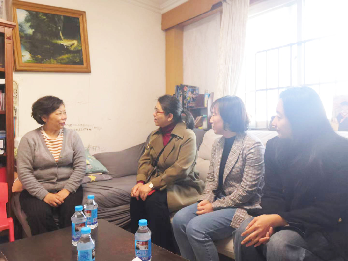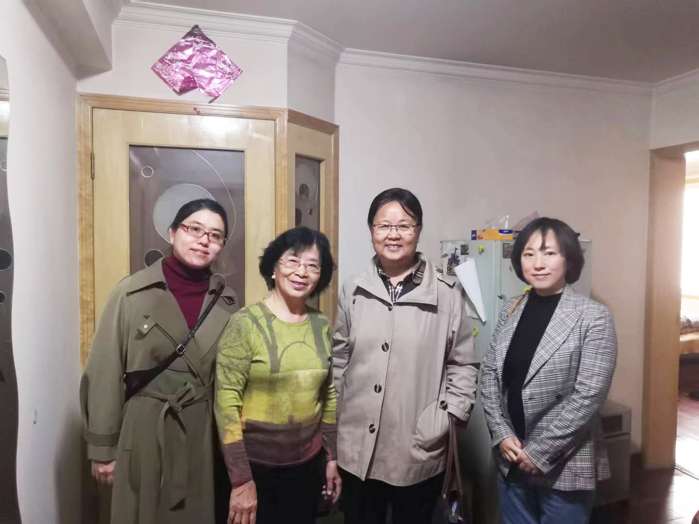 告别赵老师之后,一行人来到了余莉老师家中。余老师回忆了自己的工作经历和学院的发展历程,详细询问了学院现状,并对学院发展所取得的成绩感到欣慰。