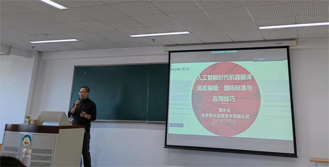 10月20日,文法学院第100期“方法与前沿”双周论坛在学院路校区逸夫楼817室举行。本次论坛主题是“人工智能时代机器翻译译后编辑:国际标准与应用技巧”,报告由北京悦尔信息技术有限公司蒙永业董事长主讲,文法学院外语系许卉艳教授主持,外语系师生参加了会议。