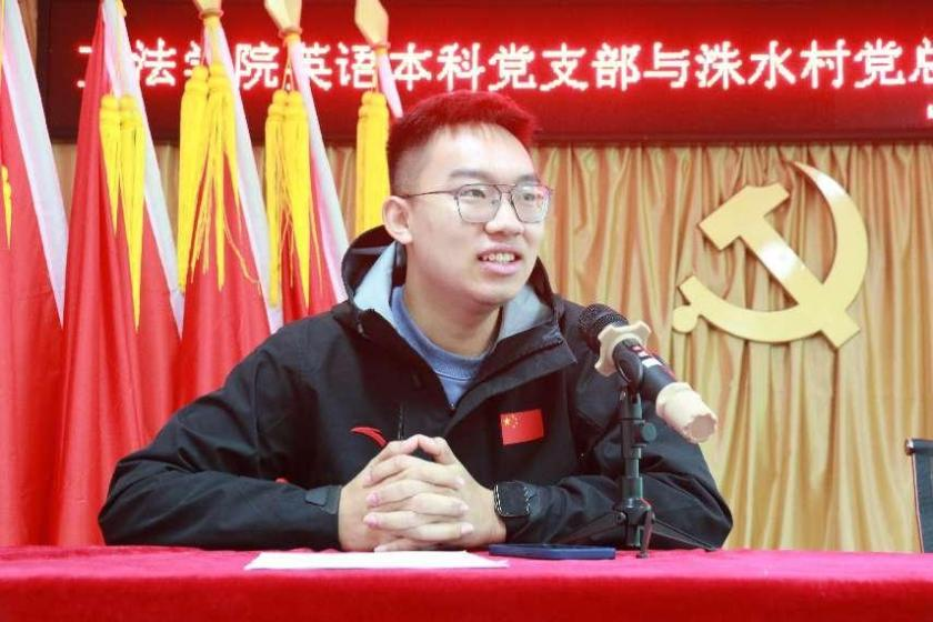 学生党员李高慰在学习了解洙水村党建工作后发表感想。通过此次共建活动,他对洙水村基层党建的方法、亮点、实效有了更具体的理解,也深刻地体会到党员在乡村建设方面发挥的先锋模范作用。