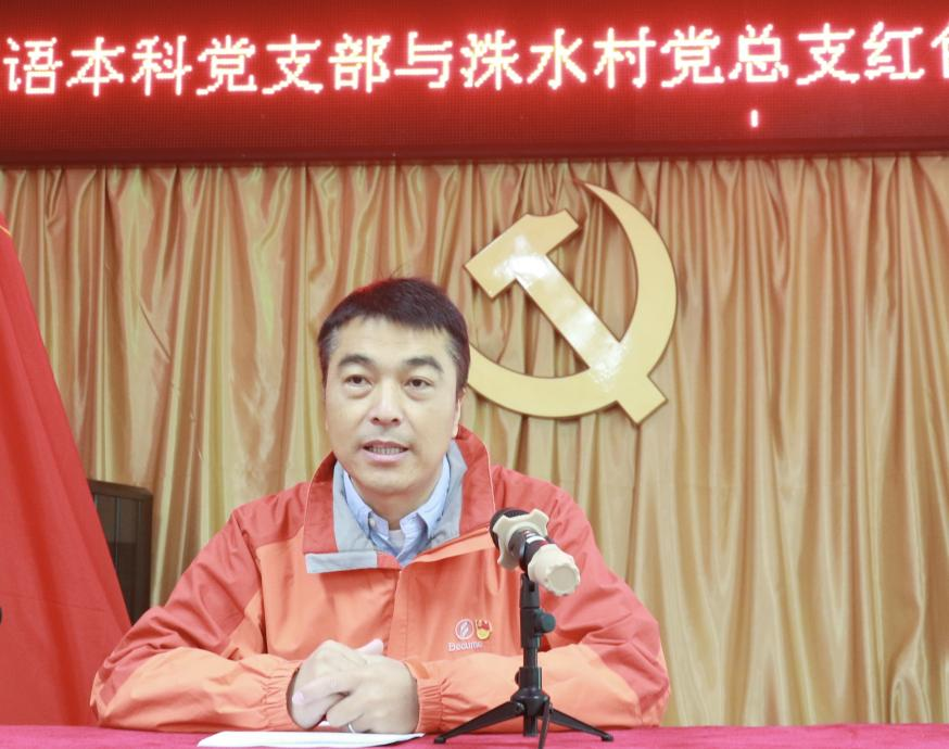 10月22日,文法学院英语本科党支部与平谷区金海湖镇洙水村党总支开展红色“1+1”共建活动,共建地点位于洙水村。副校长谭凯,文法学院院长刘金程,院党委副书记董凤姣,辅导员王振、娄真、戴彤,英语本科党支部书记穆子君,共同富裕研究院博士生赵卫卫以及党支部成员共同前往。洙水村村书记兼主任王学永,副书记王凤兰,支委兼村委曹全军,支委王福海、曹学阁,村委张强、陈丽洁,村内19名网格员参与共建活动。