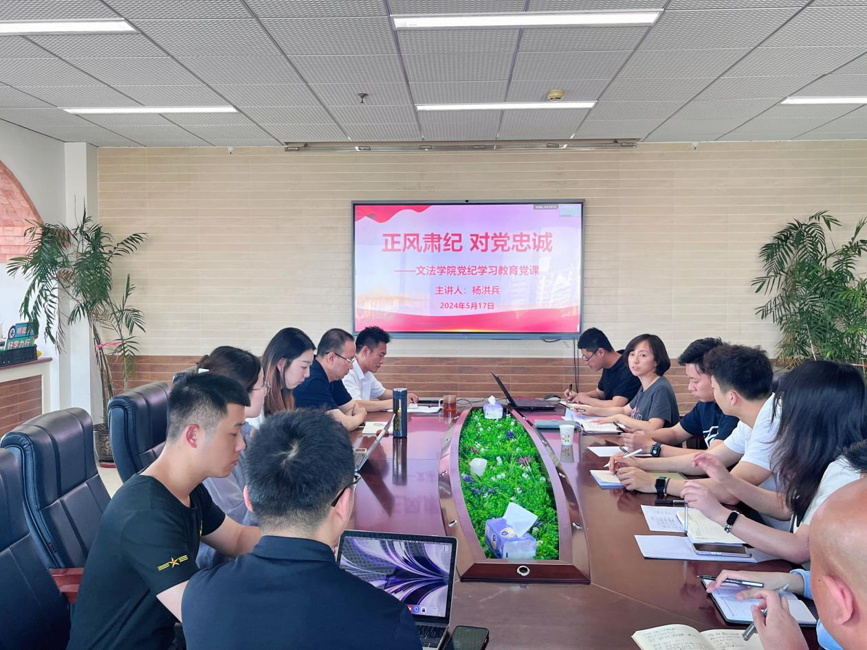 为深入学习贯彻习近平总书记关于党纪学习教育的重要讲话和重要指示精神,扎实开展党纪学习教育,5月17日下午,文法学院党委在逸夫楼1214举办党纪学习教育专题党课。学院党委书记杨洪兵主讲党课,各党支部书记、博士党支部及文法学院办公室成员线上线下共同参会。会议由院党委副书记董凤姣主持。