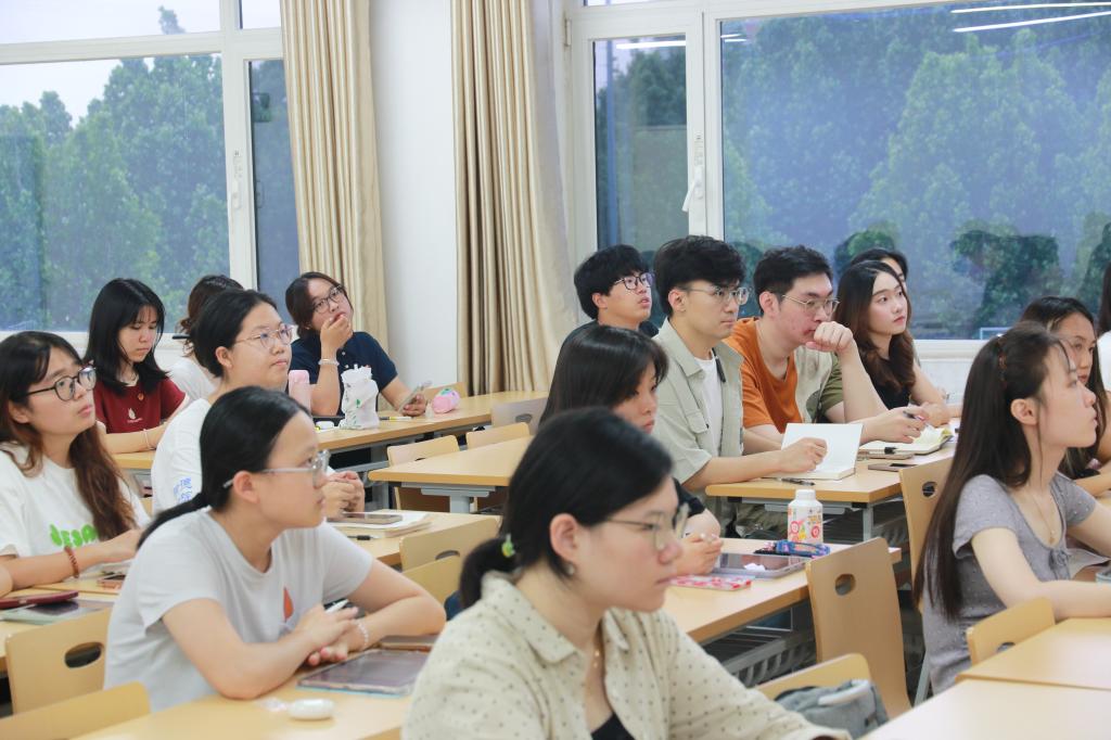 杨洪兵从当今世界处于“百年未有之大变局”深刻历史背景出发,阐述了20世纪地缘政治特点及当前世界局势,分析中美力量对比与美国乱象,全面总结了实现中华民族伟大复兴所面临的历史机遇与挑战。杨洪兵向同学们系统梳理了百年来马克思主义中国化时代化的历史经验,阐释了马克思主义理论同中华优秀传统文化双向互动、共同发展的内在逻辑,进一步坚定了同学们对于中国特色社会主义的道路自信、理论自信、制度自信和文化自信。最后,他激励同学们将个人“小我”融入国家和民族“大我”之中,围绕国家战略进行职业选择,努力承担社会责任,为强国建设和中华民族复兴伟业贡献青春力量。