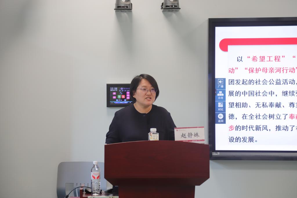 赵静姝为学员们系统讲解了党领导下的中国青年运动的百年历程,回顾了百年来四个历史时期中国青年运动为党的事业发展所贡献的青春力量。赵静姝总结道:新民主主义革命时期,党领导广大青年奋勇投身民族独立和人民解放的历史洪流;社会主义革命和建设时期,党领导广大青年全面建设新国家新社会;改革开放和社会主义现代化建设新时期,党领导广大青年在中国特色社会主义建设中建功立业;中国特色社会主义新时代,党领导广大青年投身全面建成小康社会、全面建设社会主义现代化国家的伟大历史进程。百年来,在不同的历史时期,在中国共产党的正确领导下,共青团带领广大青年坚定不移跟党走,脚踏实地、接力奋斗,为社会进步、国家富强、人民幸福奉献青春。
