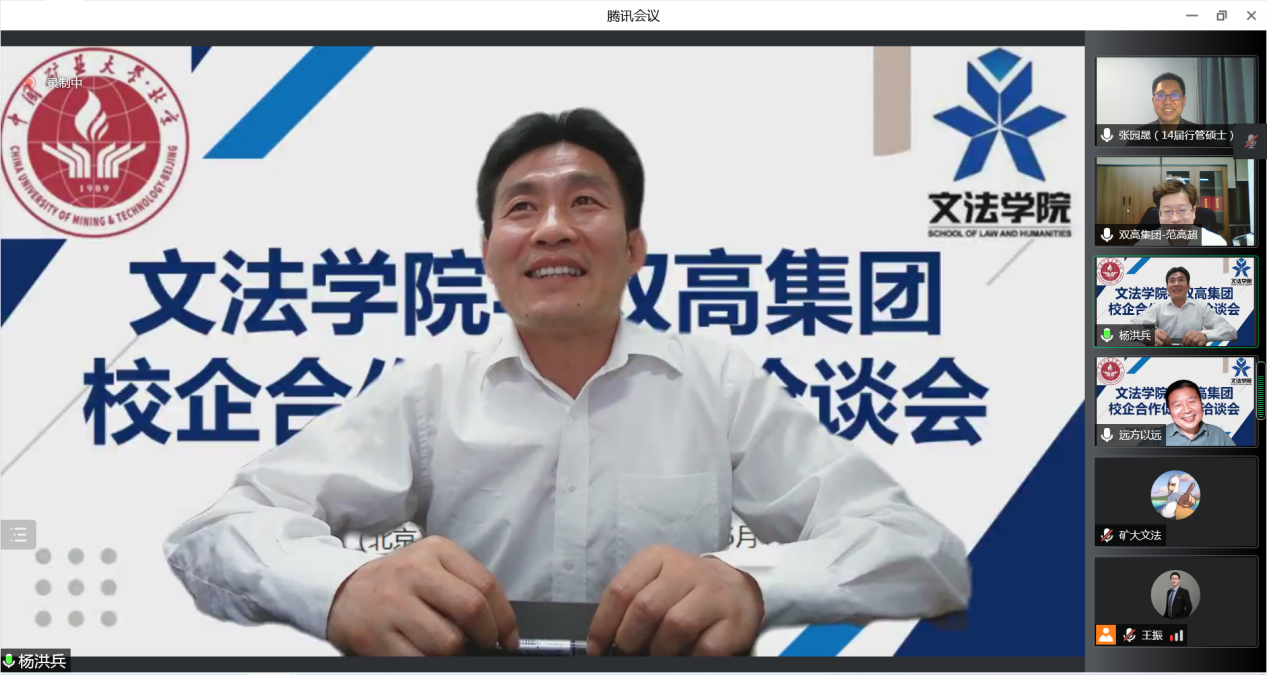 5月16日,文法学院与北京双高国际人力资本集团以线上方式举行校企合作促就业洽谈会。校党委副书记王忠强出席会议并讲话。北京双高集团人才发展事业部负责人、北京双高志远管理咨询有限公司副总经理范高超,北京市昌平区市场监督管理局市场科副科长、文法学院2014届行政管理硕士张园晟,文法学院院长殷召良,院党委书记杨洪兵,各年级辅导员、各年级同学及部分校友参加会议。殷召良主持会议。