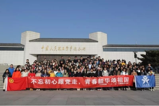 11月25日上午,我院团委书记陆雪松,辅导员陈蒙、娄真、赵丽楠,学生会主席孙娟、团委副书记梁梦莹及2017级、2018级本科生在一教南广场集合乘车,前往卢沟桥宛平城参观了中国人民抗日战争纪念馆,开展“不忘初心跟党走,青春韶华颂祖国”文法学院“一二·九”主题团日活动。本次团日活动主要围绕爱国主义教育,铭记历史展开,深切缅怀老一辈无产阶级革命家的丰功伟绩。